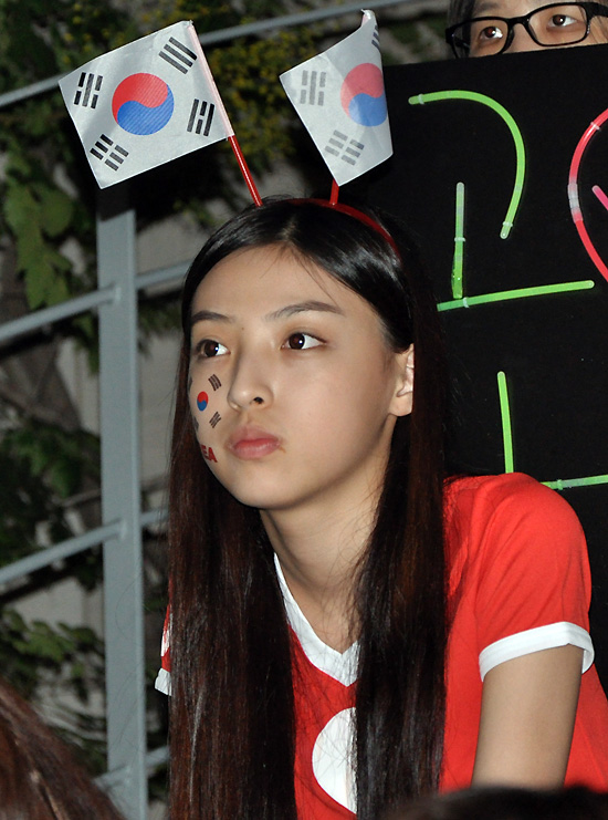지난 17일 코어콘텐츠미디어 사옥에는 '2010 남아공 월드컵' 한국 대 아르헨티나 경기 응원전을 위해 가수 티아라, 홍진영, 블랙펄, 다비치, 배우 김수로, 고사멤버들이 모였다.