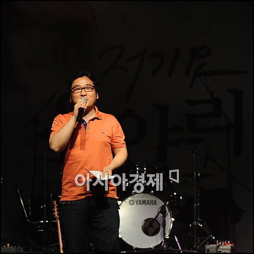[아시아경제 박성기 기자]작곡가 윤일상이 21일 오후 8시 서울 마포구 서교동 브이홀에서 진행된 신인가수 요아리 쇼케이스에서 게스트로 참석, 사회를 보고 있다.