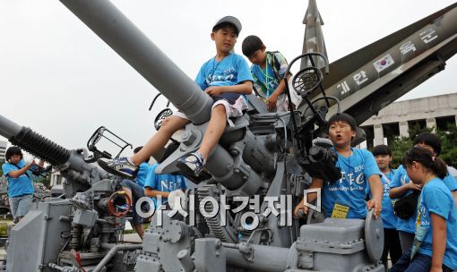 [아시아경제 이재문 기자]6.25 60주년을 앞둔 22일 서울 용산 전쟁기념관을 찾은 포항 등 어촌지역 어린이들이 전시물을 관람하고 있다. 수협은 지난 21일부터 어촌지역 6개 초등학교 40여 명을 초청해 어촌어린이 도시문화 체험 행사를 하고 있다.