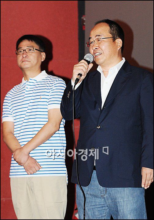 [아시아경제 박성기 기자]한지훈 작가와 이장수 감독이 22일 오후 2시 서울 압구정 CGV에서 진행된 MBC 드라마 '로드넘버원' 시사회에서 무대인사를 하고 있다.
