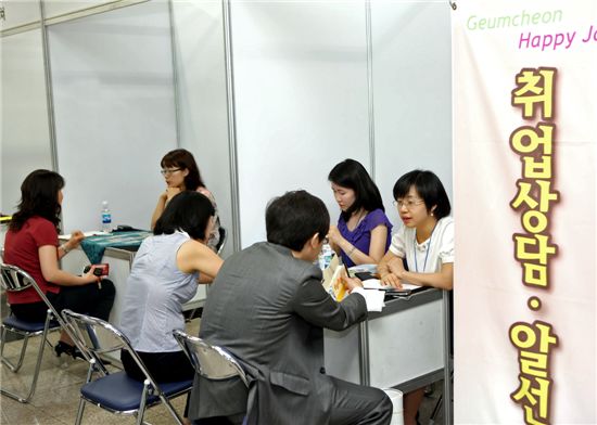 [아시아경제 박종일 기자]금천구는 22일 가산디지털단지역 내 4~5번 출구 이음길에서 구인난을 겪는 중소기업과 구직을 원하는 청·장년층이 만나는 '찾아가는 중소기업 리크루트 투어' 행사를 개최했다. 사진은 취업상담을 받는 모습.