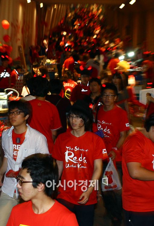 [아시아경제 한윤종 기자]2010 남아공 월드컵 대한민국 축구대표팀과 나이지리아의 거리응원전이 열린 22일 새벽 서울 한강시민공원 반포지구 거리응원전 현장에 시민들이 모여들고 있다.