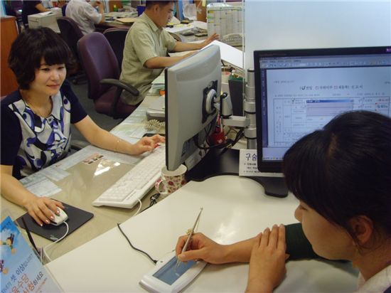 이후 양면모니터를 통해 작성된 내용을 확인, 전자 서명패드에 서명만하면 처리가 완료되는 방식이다.