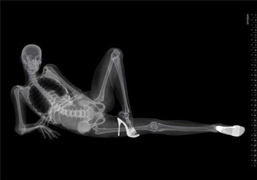 캘린더 속의 모델은 하이힐만 신은 채 포르노 스타일의 매우 야한 포즈를 취하고 있다. 문제는 X선으로 찍었다는 것.