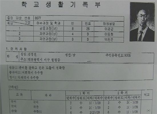 [아시아경제 한윤종 기자]개그맨 김경진이 고등학교 시절 전교 1등 성적표를 공개했다.