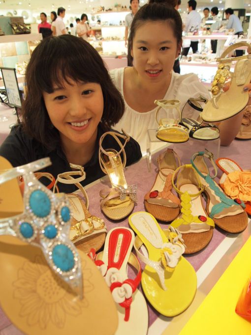 [아시아경제 조인경 기자] 현대백화점 무역센터점이 27일 더운 날씨에도 편하게 신을 수 있고 발에 포인트를 줄 수 있는 쪼리구두를 선보였다.