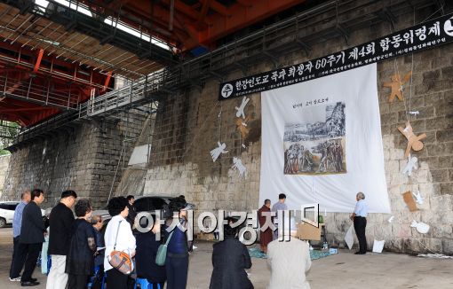 [아시아경제 이재문 기자]27일 오후 서울 한강대교 밑 노들섬 둔치에서 한국전쟁 전후 민간인 학살 유족회와 평화재향군인회 주체로 '한강인도교 폭파 희생자 60주기 제4회 합동위령제'가 열리고 있다.