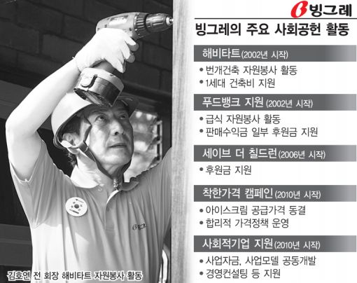 ◆사회 취약계층 돕기 앞장 = 빙그레는 김호연 전 회장(김구 재단 이사장)의 경영이념을 근간으로 기업의 사회적 책임을 다하기 위한 활동을 활발히 전개하고 있다.