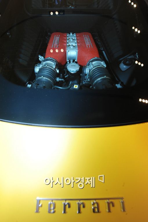 [아시아경제 이재문 기자]수퍼카 브랜드 페라리가 29일 서울 신사동매장에서 '페라리 458 이탈리아'를 선보이고 있다. '페라리 458 이탈리아'는 F1의 황제 미하엘 슈마허가 제작에 직접 참여, 8기통 4.5리터의 미드리어 엔진을 탑재했다. 최고출력 570마력, 최대토크 55.1kg.m, 제로백 3.4를 자랑한다. 가격은 3억 7천 2백만원.