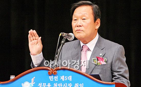 [아시아경제 이영철 기자] 민선 제5대 성무용 천안시장이 1일 취임식을 갖고 “천안시민들의 저력과 마음을 하나로 합쳐 민선 5기 동안 세계 100대 도시항구에 ‘천안호’의 닻을 당당히 내리겠다”며 “희망이 넘치는 미래도시 천안’을 위해 힘과 지혜를 모아 힘차게 나가자”고 강조했다.