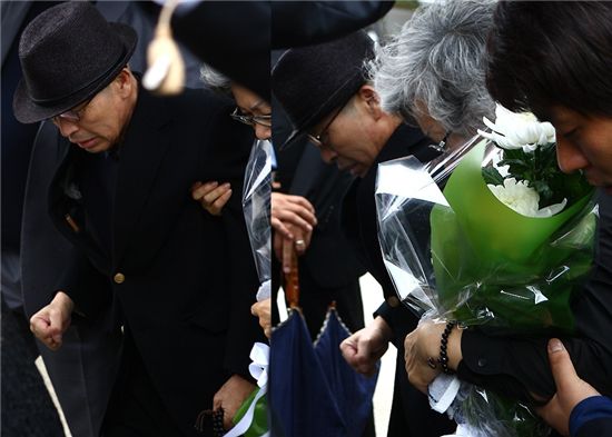 [성남(경기)=아시아경제 고재완 기자]故 박용하의 아버지가 위암 투병중인 가운데 먼저 간 아들의 삼우제((三虞祭)를 묵묵히 지켜봤다.