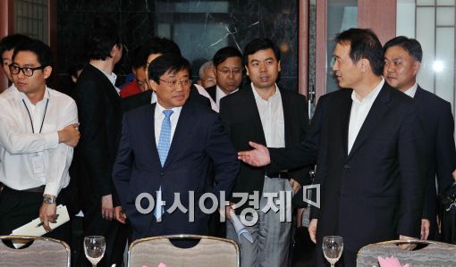 [아시아경제 이재문 기자]6일 오후 서울 프레스센터에서 열린 청년고용 확대를 위한 간담회에서 임태희 고용노동부 장관이 입장하고 있다.