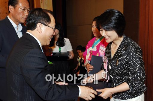 [아시아경제 이재문 기자]7일 오후 서울 중구 롯데호텔에서 열린 제14회 여성경제인의 날 기념식에서 김선현 오토오티오 대표가 산업포장을 수상하고 있다.