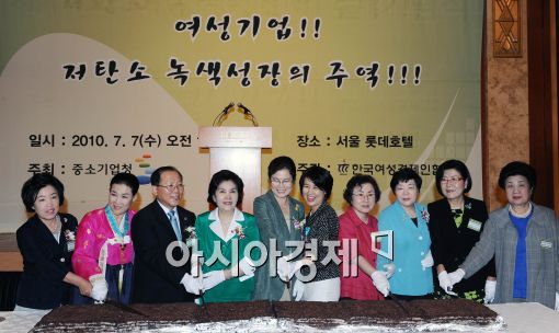[아시아경제 이재문 기자]7일 오후 서울 중구 롯데호텔에서 열린 제14회 여성경제인의 날 기념식에서 전수혜 한국여성경제인협회장을 비롯한 참석자들이 축하 떡을 자르고 있다.