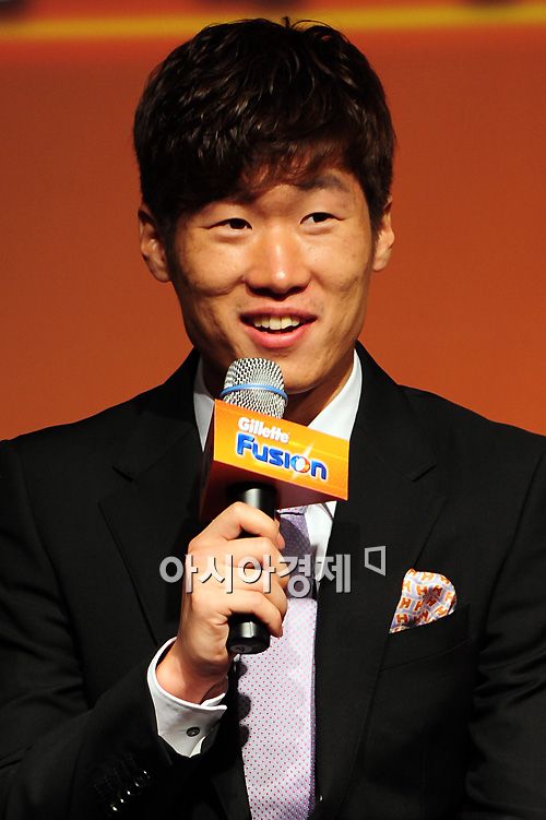 박지성은 11일 오전 서울 하얏트호텔에서 열린 질레트 퓨전 ‘최고의 직업’ 포스터 촬영 현장공개와 기자간담회에 참석했다. 블랙 컬러의 정장 차림으로 나타난 박지성은 패션 감각을 과시하며 언론의 플래시 세례를 한 몸에 받았다.