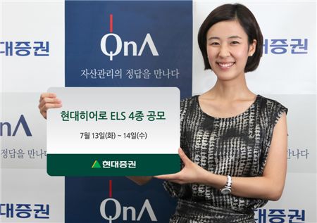 [아시아경제 이솔 기자]현대증권(대표이사 최경수)은 13일~14일 이틀간 원금보장형 ELS 1종, 원금비보장형 ELS 3종을 총 350억원 규모로 공모한다고 12일 밝혔다.