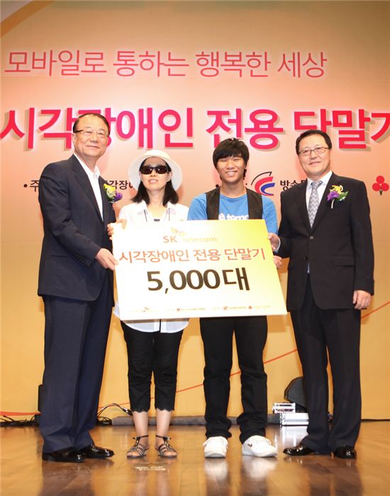 SK텔레콤은 이날 전달식을 시작으로 중증 또는 취약계층 시각장애인 5000명에게 전용 휴대폰을 제공하고, 일반 시각장애인도 이용할 수 있는 음성 도서관 애플리케이션도 함께 지원할 예정이다.