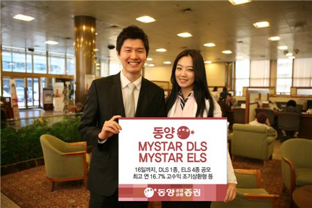 [아시아경제 임철영 기자]동양종금증권(www.MyAsset.com)은 오는 16일까지 원금보장형 및 조기상환형 파생결합증권인 ‘동양 MYSTAR DLS’ 1종(50호)과 ‘동양 MYSTAR ELS’ 4종(795~798호)을 총 450억원 규모로 공모한다.