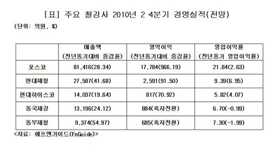 포스코, 현대제철, 동부제철 등 대부분 영업흑자