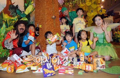 [아시아경제 이재문 기자]제과전문그룹 크라운-해태제과가 13일 서울 용산구 남영동 본사1층 갤러리 쿠오리아에서 ‘과자나라 피터팬의 네버랜드’ 이색체험전을 진행하고 있다.