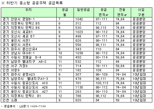 나인성 부동산써브 연구원은 "올 하반기 중소형 공공주택과 보금자리주택 3차지구 등이 풍성하게 공급될 예정"이라며 "물량이 많고 다양한 입지여건을 갖췄기 때문에 각 사업장의 장단점, 분양가 등을 비교·선택 청약할 수 있는 좋은 기회"라고 설명했다.