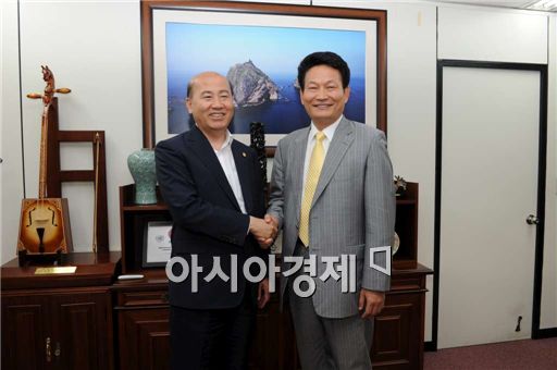 $pos="C";$title="";$txt="지난 13일 송영길 인천시장이 과천 정부청사에서 이만의 환경부 장관을 만나 악수를 나누고 있다. 사진제공=인천시 ";$size="512,340,0";$no="2010071407022232642_1.jpg";@include $libDir . "/image_check.php";?>