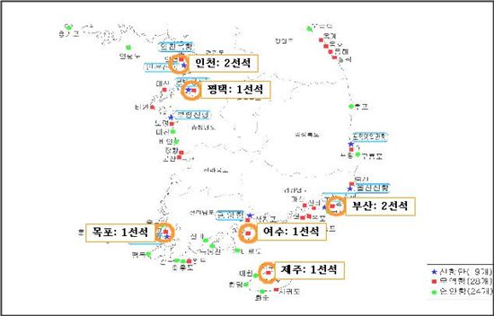 블루오션으로 부상하고 있는 동북아 크루즈시장의 수요에 맞춰 2020년까지 부산, 인천 등 6개 항만에 크루즈 전용부두도 개발한다. 이미 지난 2006년 수정된 제2차 항만기본계획에 따라 부산(영도, 8만톤급 1선석)과 여수(신항, 8만톤급 1선석)에 국제 크루주 전용부두가 확보된 상태다.