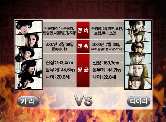 [아시아경제 윤태희 기자]카라와 티아라가 최고의 걸그룹의 자리를 두고 치열한 경쟁을 펼친다.