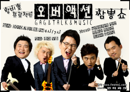 오버액션은 개그맨 윤형빈이 보컬을 맡고 실력파 밴드 뷰렛의 기타리스트 이교원과