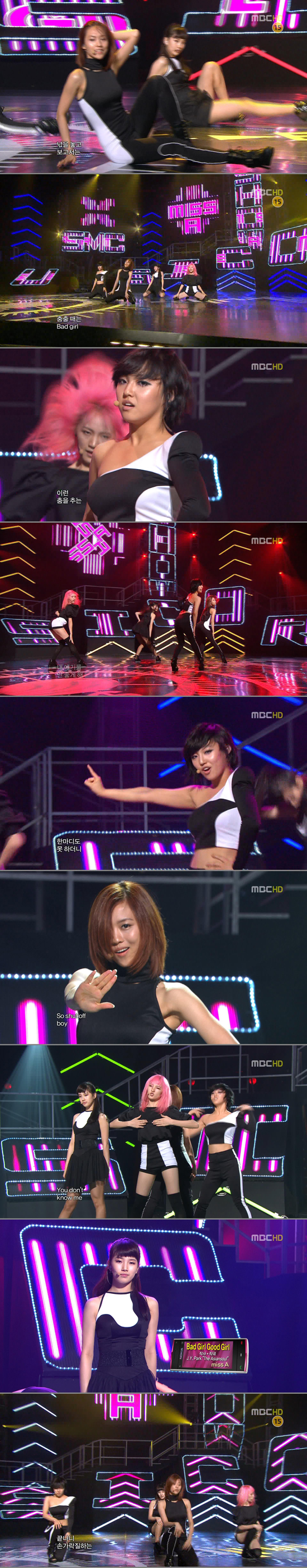미스 에이는 17일 오후 4시부터 생방송으로 진행된 MBC '쇼!음악중심'에 출연해 데뷔 음반 ‘배드 벗 굿’(Bad but Good)의 타이틀 곡 ‘배드 걸 굿 걸’(Bad Girl Good Girl)을 공개했다.