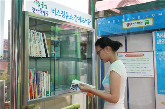 [아시아경제 박종일 기자]관악구(구청장 유종필) 청림동은 책 읽는 마을을 조성하기 위해 버스정류소에 간이도서관을 마련했다.