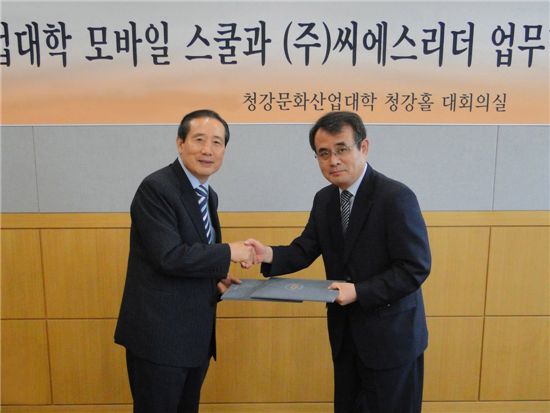 양사는 경기도 이천에 위치한 청강문화산업대학에서 CS리더 송기봉 대표와 청강문화산업대학 김영환 총장이 참석한 가운데 ‘스마트폰 전문기술 상담 교육’에 대한 산학협력 협정서를 체결했다고 18일 밝혔다.