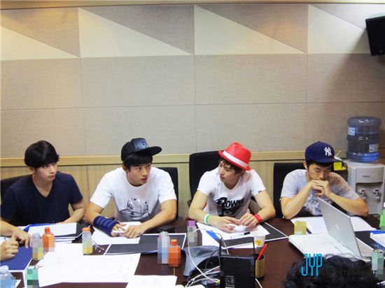 공개된 사진은 콘서트 회의에 임하고 있는 2PM멤버들의 모습으로, 무대 위 화려한 모습과는 다른 느낌의 수수한 차림과 진지한 표정으로 스태프들과 함께 회의에 임하고 있는 멤버들의 모습이 시선을 사로잡는다.