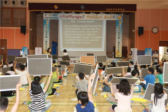 '도전! 영어 골든벨'은 오는 11월까지 학기중에 지역내 22개 초등학교를 찾아가 영어로 퀴즈대회를 열어 영어에 대한 두려움 해소와 자신감을 키울 수 있는 기회를 마련할 계획이다.