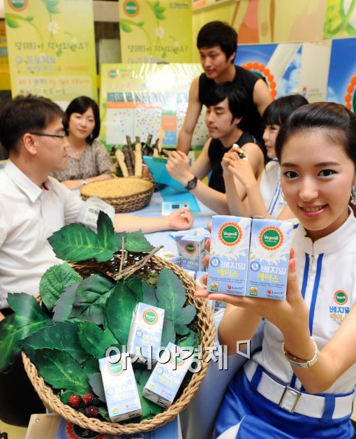 [아시아경제 이재문 기자]㈜정ㆍ식품이 19일 서울 용산 이마트에서 ‘GI 프로젝트 베지밀 에이스로 당 건강 챙기세요!’ 캠페인을 벌이고 있다. ‘GI 프로젝트 베지밀 에이스’는 GI지수(Glycemic Index 당지수)가 낮은 결정과당과 팔라티노스(사탕수수내의 천영당), 민간에서 당 상승 억제에 효과가 있는 것으로 알려진 뽕잎 분말을 함유해 당 수치와 성인병을 걱정하는 소비자들이 안심하고 두유를 즐길 수 있도록 했다.