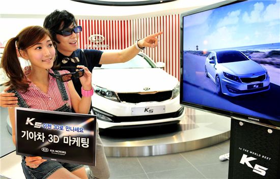 기아차는 다음달 말까지 부산모터쇼에서 첫 선을 보여 화제를 모았던 K5 3D 홍보 영상을 기아차 10개 지점 및 500여개 전국 주요 백화점 삼성전자 매장, 삼성전자 디지털프라자 등에서 삼성 파브(PAVV) 3D TV를 통해 상영한다.