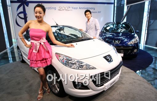 [아시아경제 이재문 기자]프랑스 자동차 브랜드 푸조(PEUGEOT)의 공식수입원인 한불모터스(주)가 20일 오전 서울 청담동 푸조 강남타워에서 창립 200주년을 기념해 출시된 밀레짐 207CC 와 207GT을 선보이고 있다.