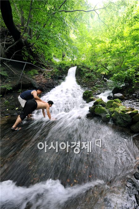 $pos="C";$title="";$txt="";$size="450,676,0";$no="2010072013194717565_1.jpg";@include $libDir . "/image_check.php";?>[아시아경제 조용준 기자]초복을 지나면서 전국이 섭씨 35도에 육박하는 찜통더위가 기승을 부리고 있는 가운데 20일 서울지역의 낮 최고기온이 올 들어 가장 높은 34도까지 오르며 불볕더위가 이어지고 있다. 이날 원시림이 살아있는 울릉도 나리분지 용출소계곡에서 관광객들이 시원한 계곡물에 등목을 하며 더위를 식히고 있다.
