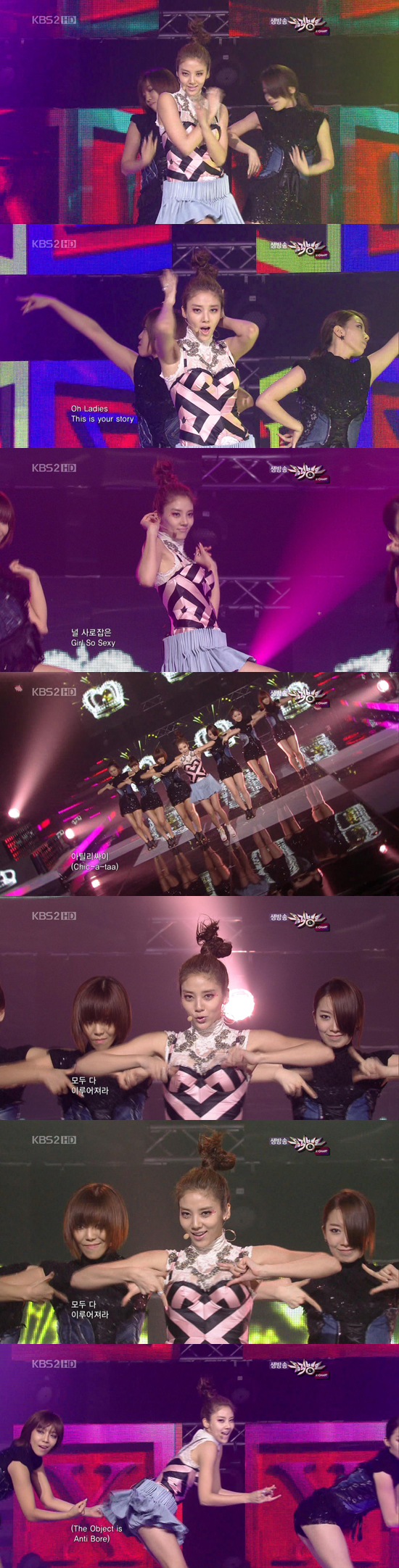 손담비는 23일 오후 5시 50분 생방송으로 진행된 KBS2 '뮤직뱅크'에 출연해 세 번째 미니음반 ‘더 퀸’(the queen)의 수록곡인 ‘캔트 유 씨'(Can't U see), ‘퀸’(queen)을 공개했다.
