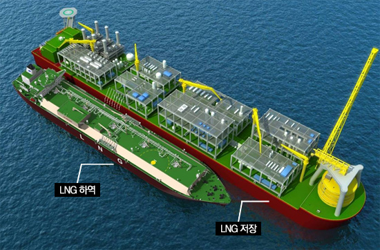 지난해 삼성중공업이 쉘과 15년간 장기 공급계약을 체결한 세계 최대 규모의 LNG-FPSO는 축구장 4개가 들어갈 수 있는 480m의 거대한 크기로 다양한 설비가 장착돼 바다 한가운데에서 천연가스를 뽑아낸다.