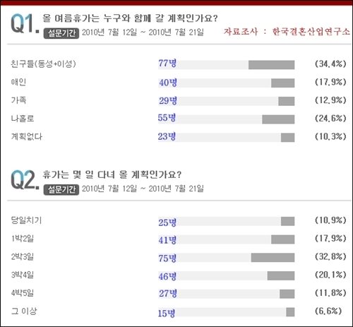 $pos="C";$title="레드힐스";$txt="";$size="500,463,0";$no="201007241136482479968A_1.jpg";@include $libDir . "/image_check.php";?>[아시아경제 조강욱 기자] 미혼 남녀의 여름휴가 동행자는 친구들, 일정은 2박3일로 다녀오겠다는 계획이 가장 많은 것으로 조사됐다.