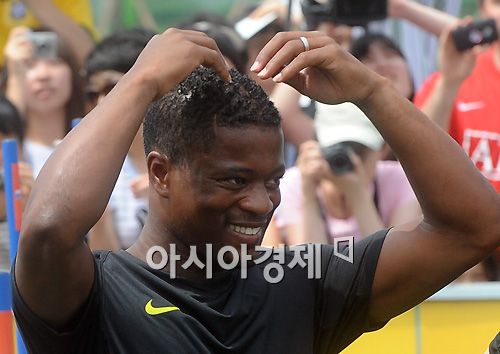 [수원(경기)=아시아경제 이종길 기자]프랑스 파트리스 에브라(맨체스터 유나이티드)가 또렷한 한국말로 팀 동료 박지성을 축하했다.