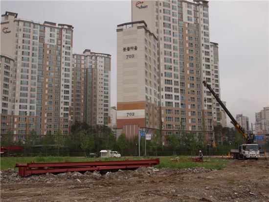 24일 오전 11시 경. 내년 하반기 개통될 판교역사와 동양엔파트 사이 '판교 호반 주상복합(가칭)' 건설현장.