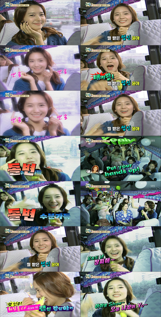버스로 이동하는 도중 MC 몽은 지난 5월 파일럿 방송 당시 펼쳤던 윤아의 멋진 랩 실력을 기억해내고는 다시 보여 달라고 요구했다.
