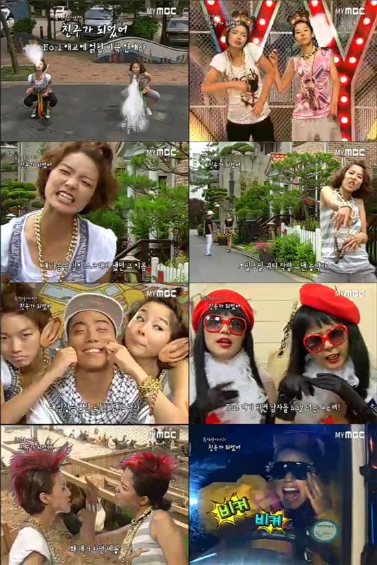 안영미와 김나영은 25일 오전 방송된 ‘꿀단지’에서 ‘친구가 되었어’ 꼭지에 출연했다. 힙합 스타일의 곡을 기본으로 매주 가사를 바꾸는 형식의 뮤직비디오였다. 거만한 표정으로 랩을 구사한 두 사람은 코믹 댄스를 곁들였다.
