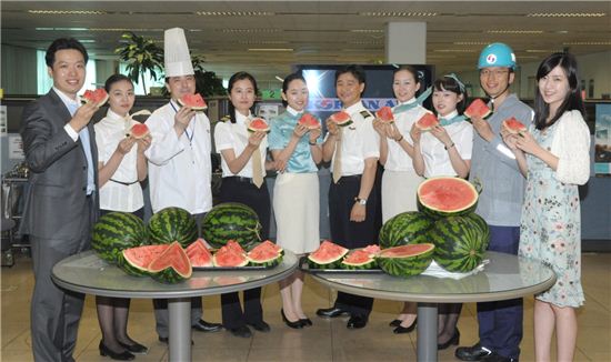 $pos="C";$title="";$txt="";$size="550,326,0";$no="2010072715153518236_1.jpg";@include $libDir . "/image_check.php";?>[아시아경제 임혜선 기자]대한항공이 27일 하계 성수기 특별수송기간 직원들의 노고를 위로하기 위해 전 직원에게 수박을 제공했다.