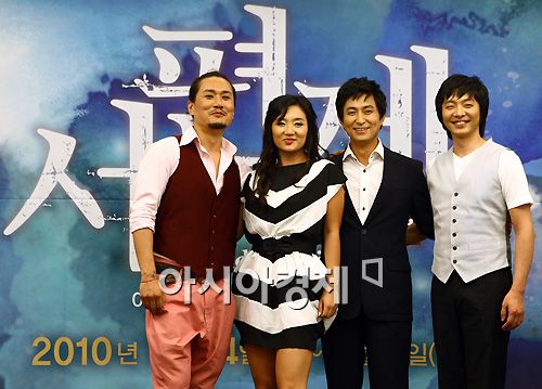 [아시아경제 한윤종 기자]27일 오후 서울 중구 프레스센터에서 진행된 뮤지컬 '서편제' 기자간담회에서 JK 김동욱(왼쪽부터), 이영미, 서범석, 홍경수가 포즈를 취하고 있다.