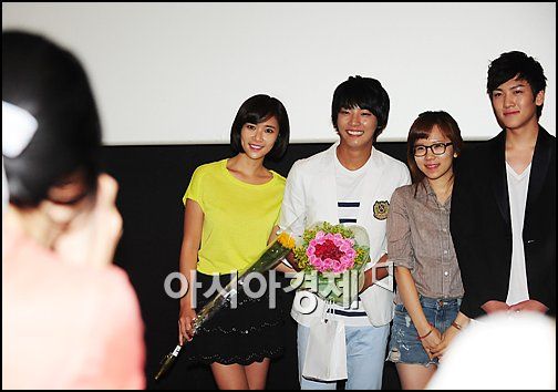 스크린 앞에 나선 배우들은 예상 외로 많은 관객 수에 함박웃음을 지었다. KBS2 드라마 ‘제빵왕 김탁구’의 윤시윤과 SBS 드라마 ‘자이언트’의 황정음을 만나려는 팬들이 몰려온 것.