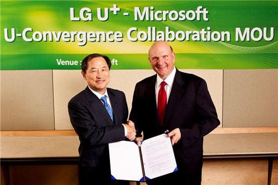 LG유플러스 이상철 부회장과 MS 스티브 발머 CEO는 미국 워싱턴주 레드몬드에 위치한 MS 본사에서 중소기업 특성에 맞는 토털 솔루션을 제공, 중소기업 IT 경쟁력 강화를 위해 클라우드 기반의 SaaS(Software as a Service) 서비스 사업을 공동 추진키로 하는 전략적 제휴를 체결했다고 29일 밝혔다.