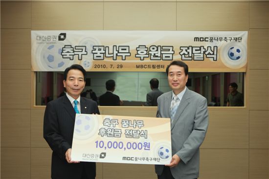 [아시아경제 김은별 기자]대신증권은 29일 일산 MBC드림센터에서 1000만원을 MBC 꿈나무축구재단에 전달했다고 밝혔다.